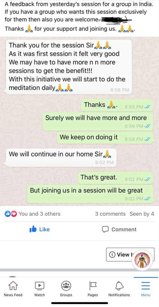 We will be facilitating a 30 minute special meditation with Power of Powers session Every Sunday throughout the year online in a closed Facebook group. This will be Facilitated by Mrs. Vandana Sharma – The world’s Most Powerful Healer.